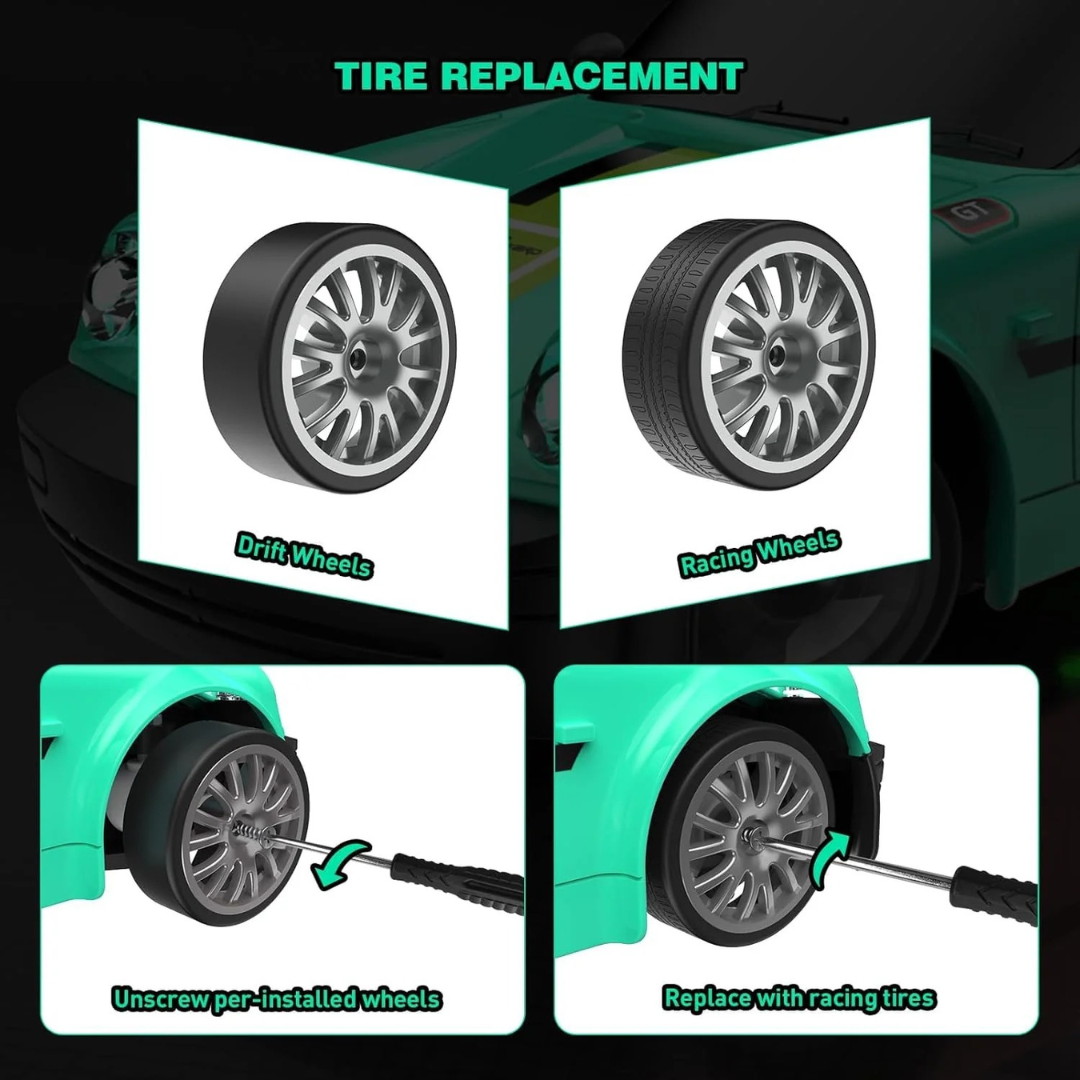 - 🔄 4WD Drifting Tires – Specialized tires allow effortless drifting and stunt performance.