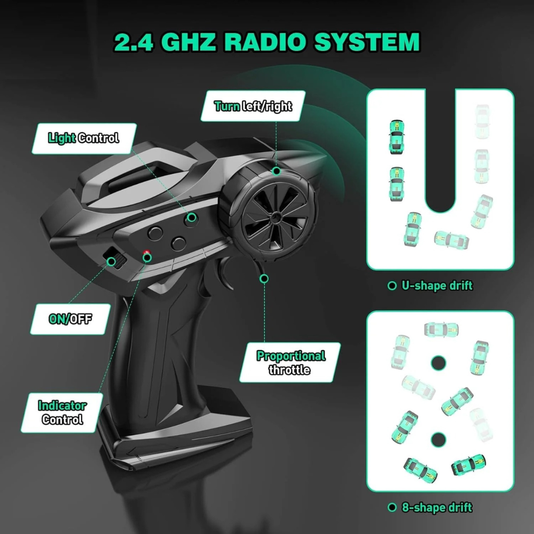 - 🎮 2.4GHz Remote Control – Stable signal, no interference, multiple cars can race together.