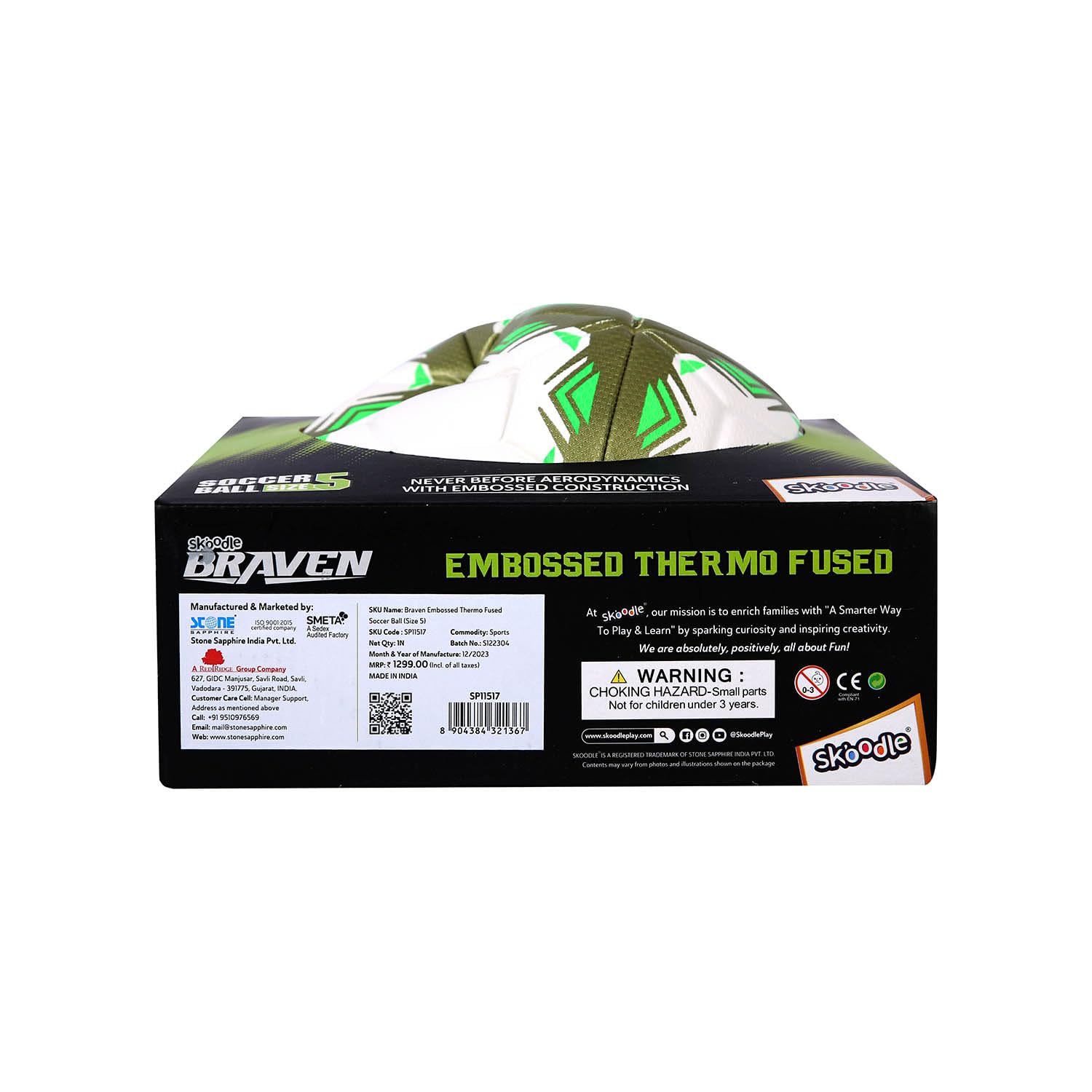 Play like a pro with the SKOODLE Braven Embossed Thermo Bonded Football – Size 5 (TPU150). Designed for superior performance and durability, this football is crafted with premium TPU material and advanced thermo-bonding technology that ensures a seamless finish, optimal shape retention, and consistent flight. Whether for training sessions, casual matches, or professional play, this ball delivers top-notch grip, control, and long-lasting performance on all surfaces. A reliable choice for football lovers who demand quality and endurance.